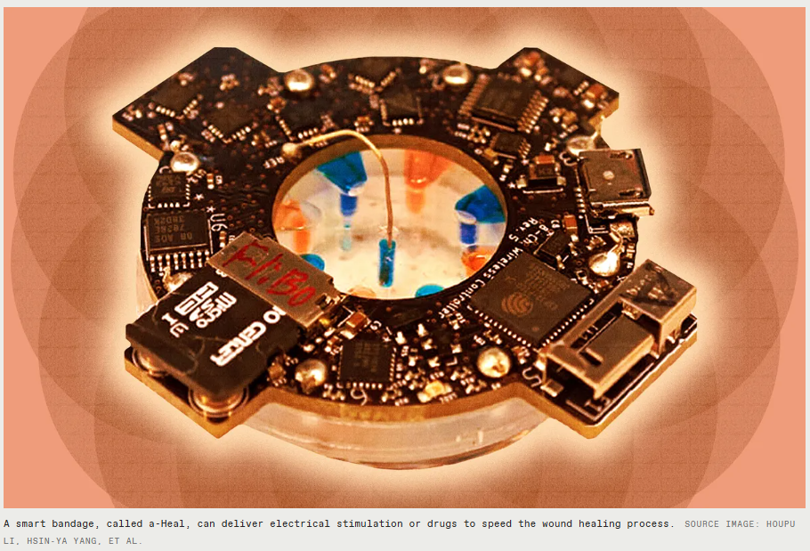 - Researchers from the University of California, Santa Cruz, in collaboration with UC Davis, and supported by DARPA’s BETR (Bioelectronics for Tissue Regeneration) program have developed a prototype smart bandage called a-Heal, which uses AI-guided electrical stimulation and drug delivery to accelerate wound healing.