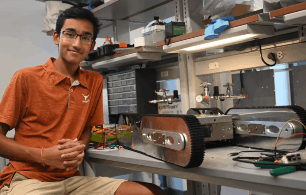 Link: https://cockrell.utexas.edu/news/this-first-year-student-invented-a-fire-fighting-robot/