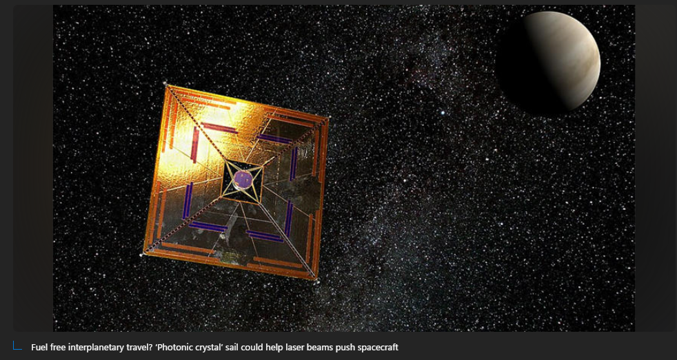Story 1: Researchers Develop Photonic Crystal Light Sails for Interplanetary Exploration – New design combines low mass, strong wavelength selectivity, and scalable fabrication potential.