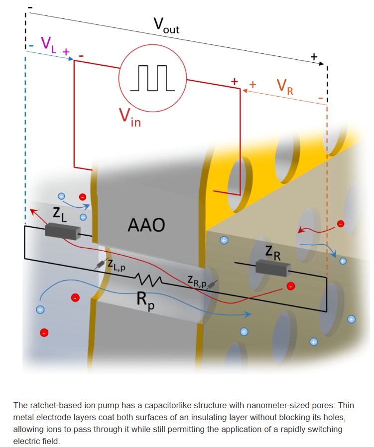 - The device works using a “ratchet” mechanism: by rapidly switching voltage across a first-of-its-kind designed membrane, it creates a one-way flow of ions through the material. This exploits nanoscale electrical effects to continuously move charged particles in a controlled direction.