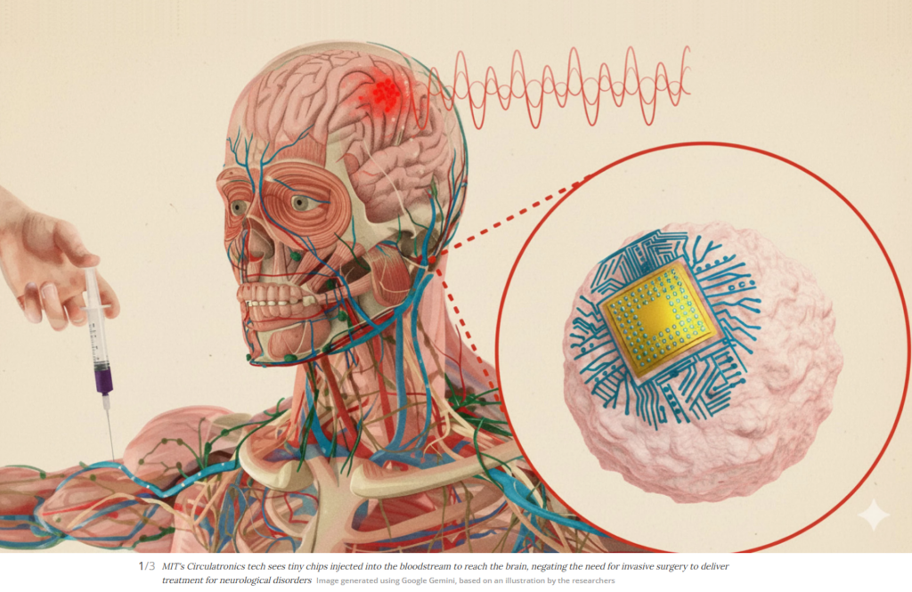 • MIT researchers have developed “Circulatronics,” a groundbreaking technology that uses injectable brain chips to treat neurological diseases without surgery.