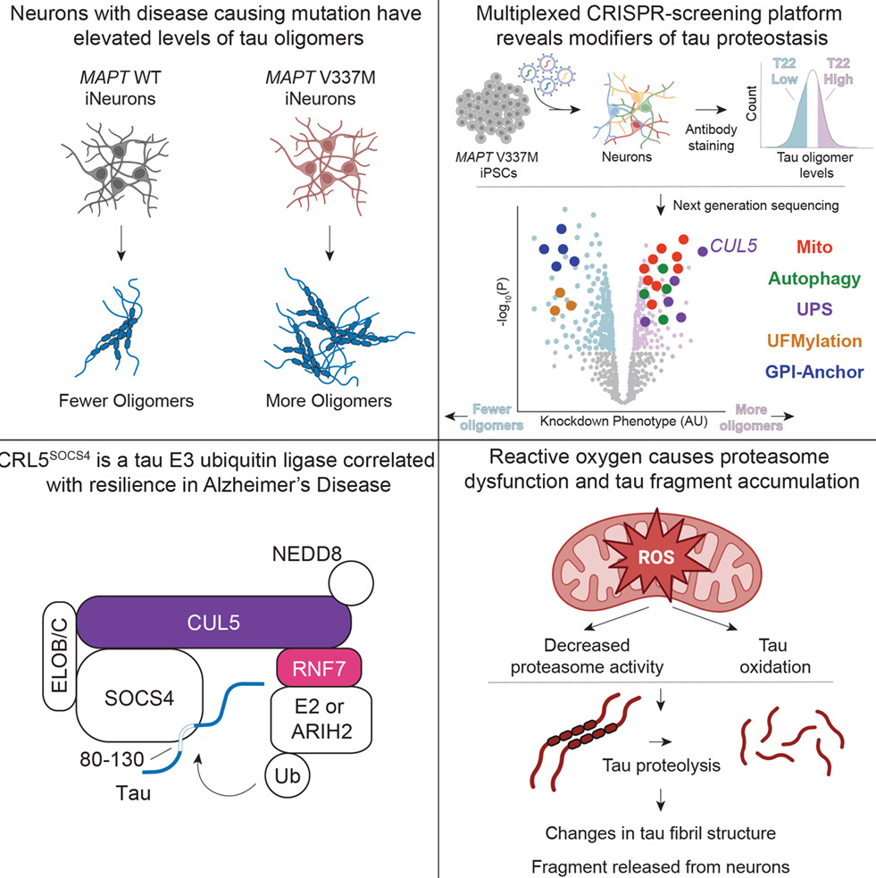 • The study, published in the journal Cell, used a novel CRISPR-based genetic screening approach on lab-grown human brain cells to determine the cellular machinery that controls the accumulation of tau protein in the brain.